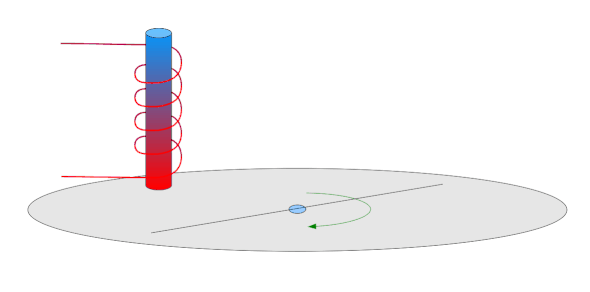 od jiného magnetu se např. odpuzuje, snaží se otočit (podle vnějšího magnetu).