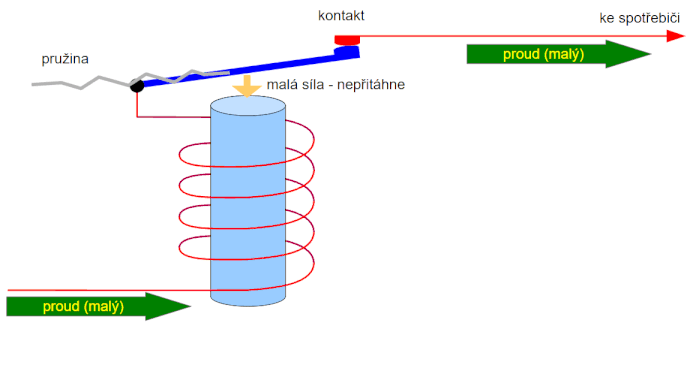cívkou způsobí rozpojení kontaktů (např. při