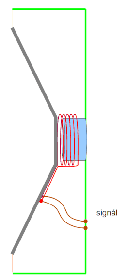 reproduktor: do cívky přichází proměnný el. proud ze